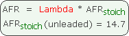 There is a simple relationship between AFR and Lambda that depends on the stoich AFR value of the fuel. The stoich AFR value for unleaded fuel is 14.7 and this means that when the controller measures lambda of 1.0 then it's also measuring an AFR of 14.7. Other fuels (say E10) will have different stoich AFR values (E10 = 14.0 to 14.1). The stoich AFR value is important for injector (or jet) sizing but once this is handled it's often better to work in lambda units (or to think of the fuel as having a stoich AFR of 14.7, even though you know it doesn't).
